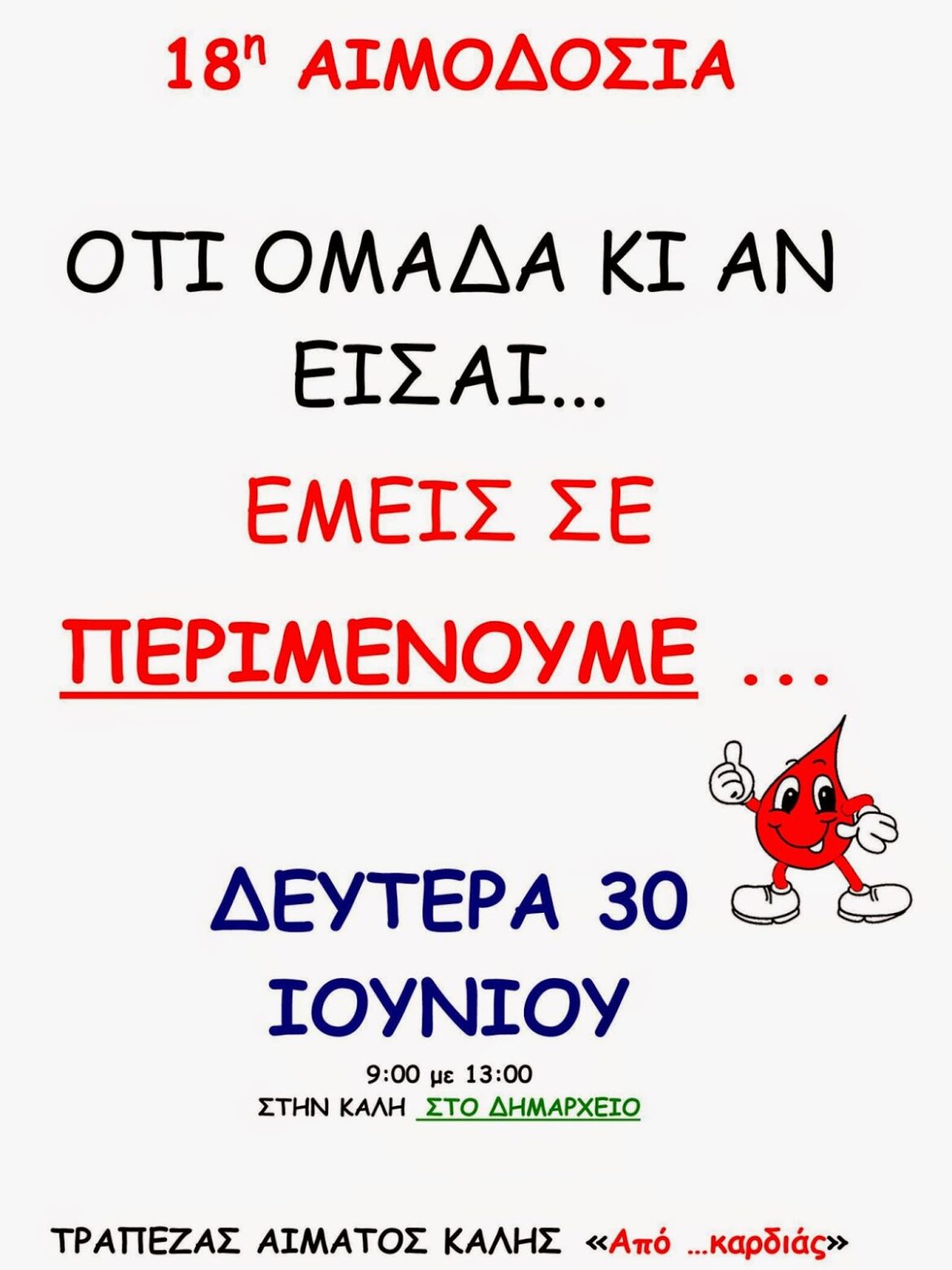 Home » 18Η ΑΙΜΟΔΟΣΙΑ ΤΡΑΠΕΖΑΣ ΑΙΜΑΤΟΣ ΚΑΛΗΣ