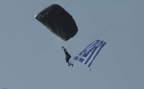 Η πτώση αλεξιπτωτιστών και η παράδοση της ελληνικής σημαίας