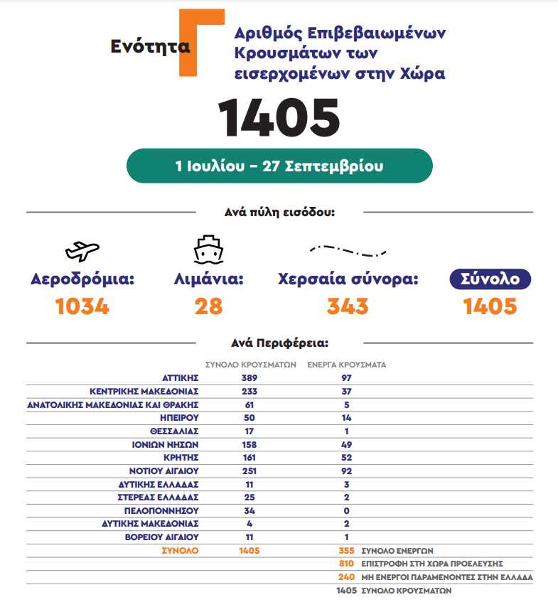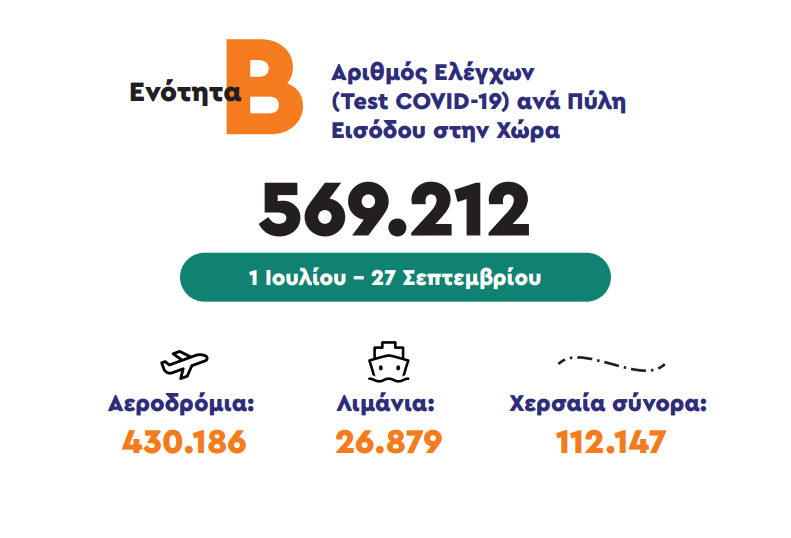 Επίσης, από 1η Ιουλίου – 27 Σεπτεμβρίου έχουν διενεργηθεί 569.212 τεστ.