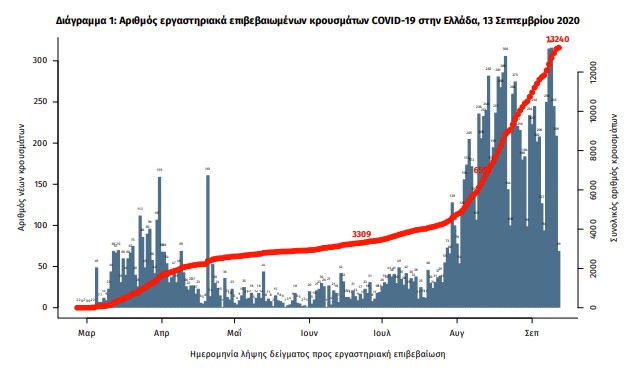 Έτσι. ο συνολικός αριθμός των κρουσμάτων είναι 13.240, εκ των οποίων το 55.5% άνδρες, ενώ 2.394 (18.1%) θεωρούνται σχετιζόμενα με ταξίδι από το εξωτερικό και 5.710 (43.1%) είναι σχετιζόμενα με ήδη γνωστό κρούσμα.