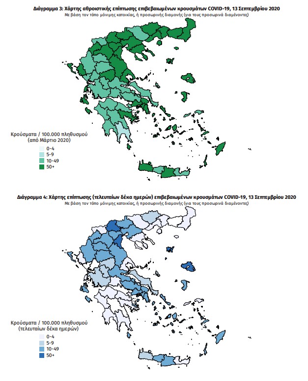 Ο χάρτης αποτυπώνει τη γεωγραφική κατανομή των συνολικών κρουσμάτων COVID-19 (από την αρχή της επιδημίας) ανά Περιφερειακή Ενότητα της χώρας, με βάση την δηλωθείσα διεύθυνση μόνιμης κατοικίας του ασθενούς, ή τη διεύθυνση προσωρινής διαμονής για τους τουρίστες και άλλους προσωρινά διαμένοντες στην Ελλάδα. Συμπεριλαμβάνονται τόσο κρούσματα με ιστορικό ταξιδίου (“εισαγόμενα”) όσο και κρούσματα με πιθανή εγχώρια μετάδοση