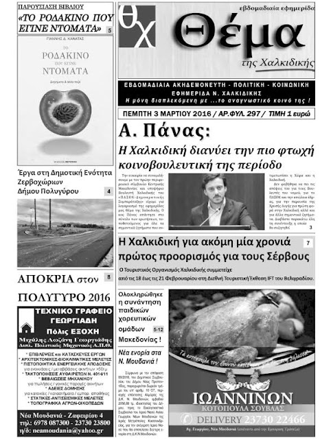 Συνέντευξη στην εβδομαδιαία εφημερίδα Θέμα της Χαλκιδικής!