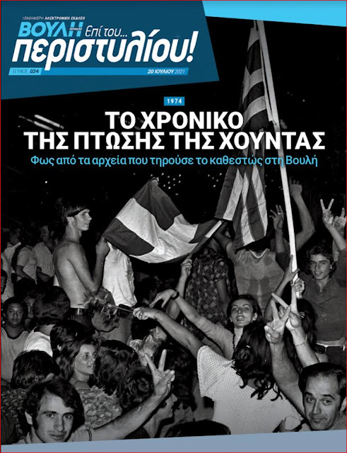 Tο αφιέρωμα στην πτώση της χούντας και την αποκατάσταση της Δημοκρατίας κυριαρχεί στο 24ο τεύχος του ηλεκτρονικού περιοδικού της Βουλής «Επί του… Περιστυλίου!».