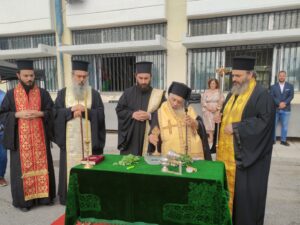 Με την ευκαιρία της ονοματοδοσίας του 8ου Δημοτικού Σχολείου Γιαννιτσών ο Σεβασμιώτατος Μητροπολίτης Εδέσσης, Πέλλης και Αλμωπίας κ. Ιωήλ τέλεσε τον Αγιασμό για την έναρξη του νέου σχολικού έτους με την συμμετοχή των εφημερίων της ενορίας Κοιμήσεως της Θεοτόκου (Μητροπόλεως) Γιαννιτσών και του Αρχιδιάκονου της Ι. Μητροπόλεως.