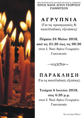 Κοινωνικά ΑΓΡΥΠΝΙΑ ΚΑΙ ΠΑΡΑΚΛΗΣΗ ΓΙΑ ΤΟΥΣ ΜΑΘΗΤΕΣ ΣΤΟΝ Ι. Ν. ΑΓ. ΓΕΩΡΓΙΟΥ ΓΙΑΝΝΙΤΣΩΝ by Χρήστος Δημητριάδης 8 έτη ago written by Χρήστος Δημητριάδης 8 έτη ago 0 comments 0 minutes read 0FacebookTwitterPinterestEmail 32 Εν όψει των προαγωγικών και Πανελλαδικών εξετάσεων θα τελεσθούν στον Ιερό Ναό Αγίου Γεωργίου Γιαννιτσών οι εξής ακολουθίες υπέρ επιτυχίας των μαθητών: ΑΓΡΥΠΝΙΑ Πέμπτη 24 Μαΐου 2018, από 09:30 μ.μ. έως 12:30 π.μ. ΙΕΡΑ ΠΑΡΑΚΛΗΣΙΣ Τετάρτη 6 Ιουνίου, στις 6:30 μ.μ. 0 FacebookTwitterPinterestEmail Χρήστος Δημητριάδης previous post Πρόγραμμα του Διεθνούς Συνεδρίου για την Επιτραπέζια Ελιά next post ΚΙΝΗΜΑ ΑΛΛΑΓΗΣ Ν.Ε. ΠΕΛΛΑΣ – ΕΚΛΟΓΗ ΓΡΑΜΜΑΤΕΑ ΚΑΙ ΟΡΓΑΝΩΝ You may also like Μήνυμα ζωής από το Καβαλάρι: Επιτυχημένη αιμοδοσία με παρουσίες–έκπληξη 4 μήνες ago Ο Δήμος Έδεσσας τιμά την Τρίτη Ηλικία με Δράσεις Πρόληψης και Υγείας 6 μήνες ago Εβδομάδα Πληρωμών: Αναλυτικός Οδηγός για Συντάξεις και Επιδόματα 8 μήνες ago Επικίνδυνες αγέλες αδέσποτων σκύλων στην Έδεσσα, καλεί τον Δήμο για άμεσα μέτρα 8 μήνες ago «Καίει» η Ακρίβεια: Πρόβλεψη για «Καυτό» Φθινόπωρο στους Καταναλωτές 8 μήνες ago Οι εικόνες της φύσης ως βάλσαμο για τον πόνο 1 έτος ago Leave a CommentΓια να σχολιάσετε πρέπει να συνδεθείτε.