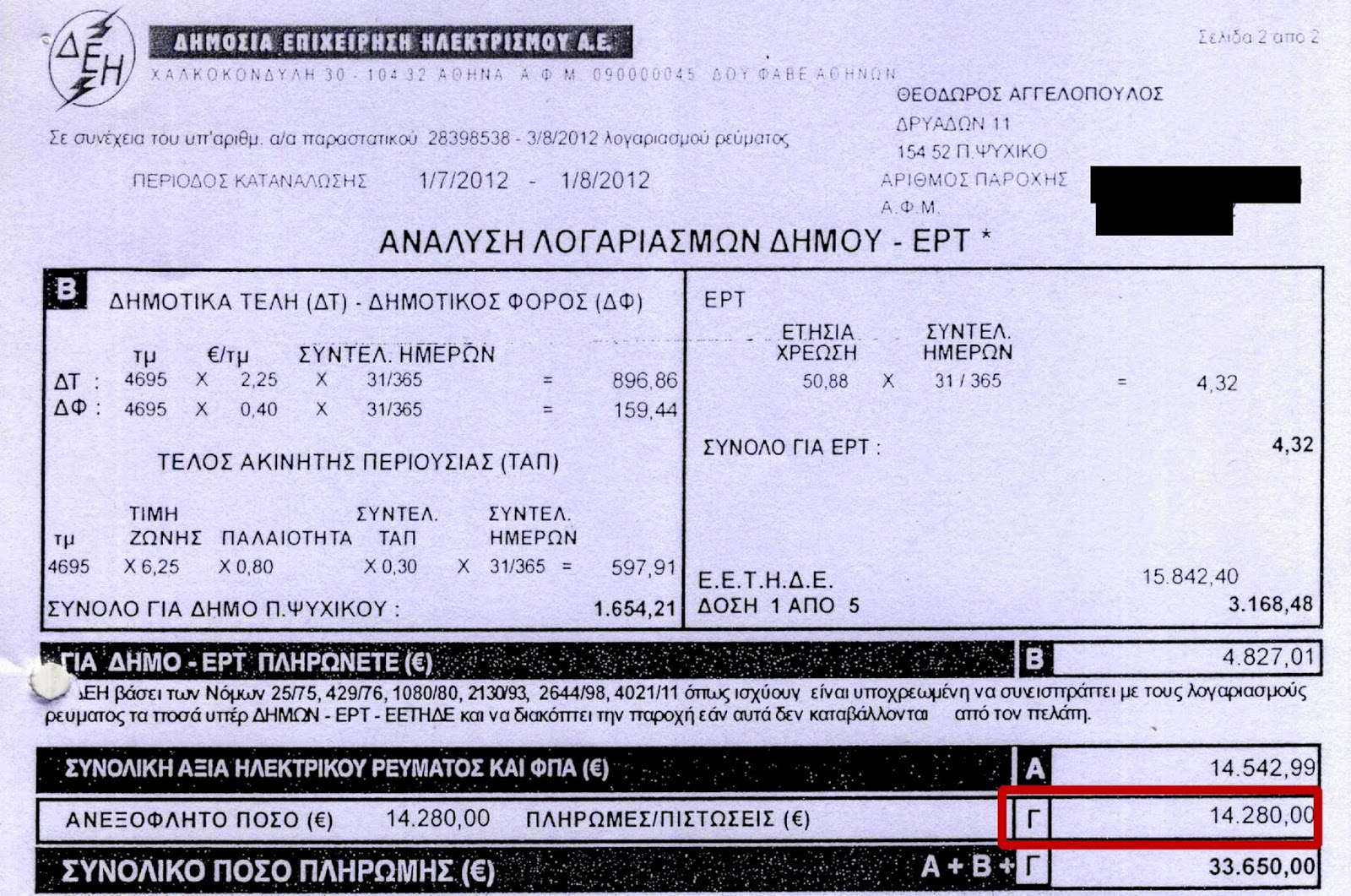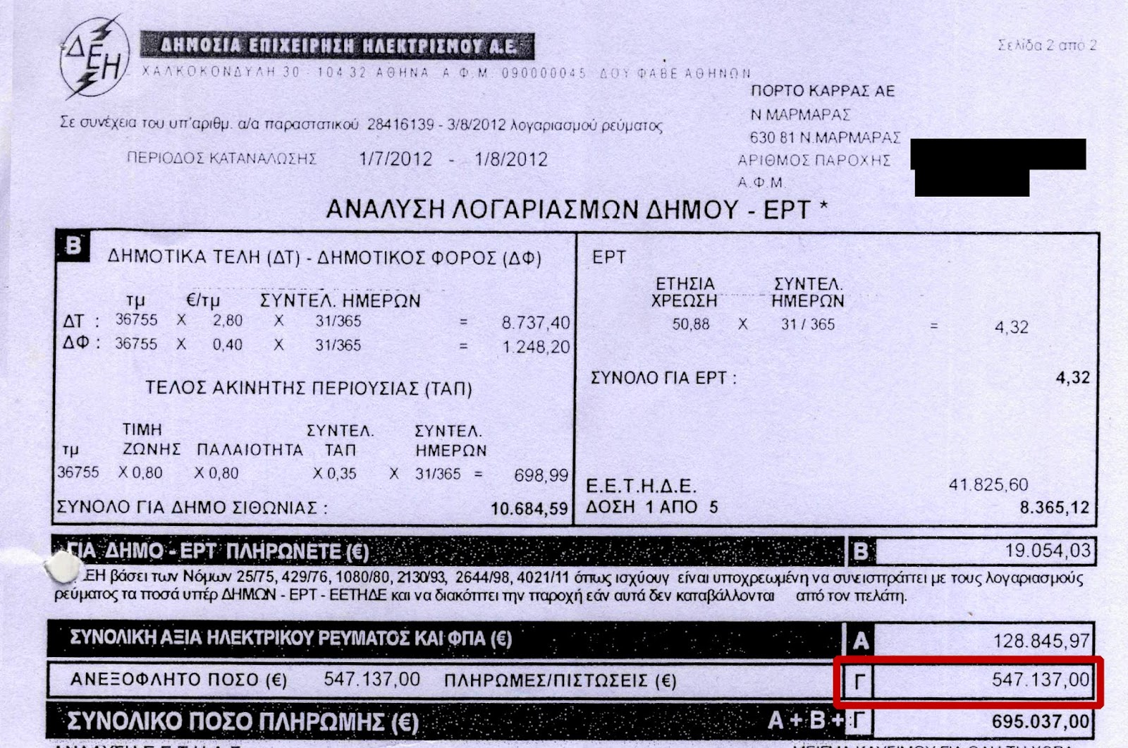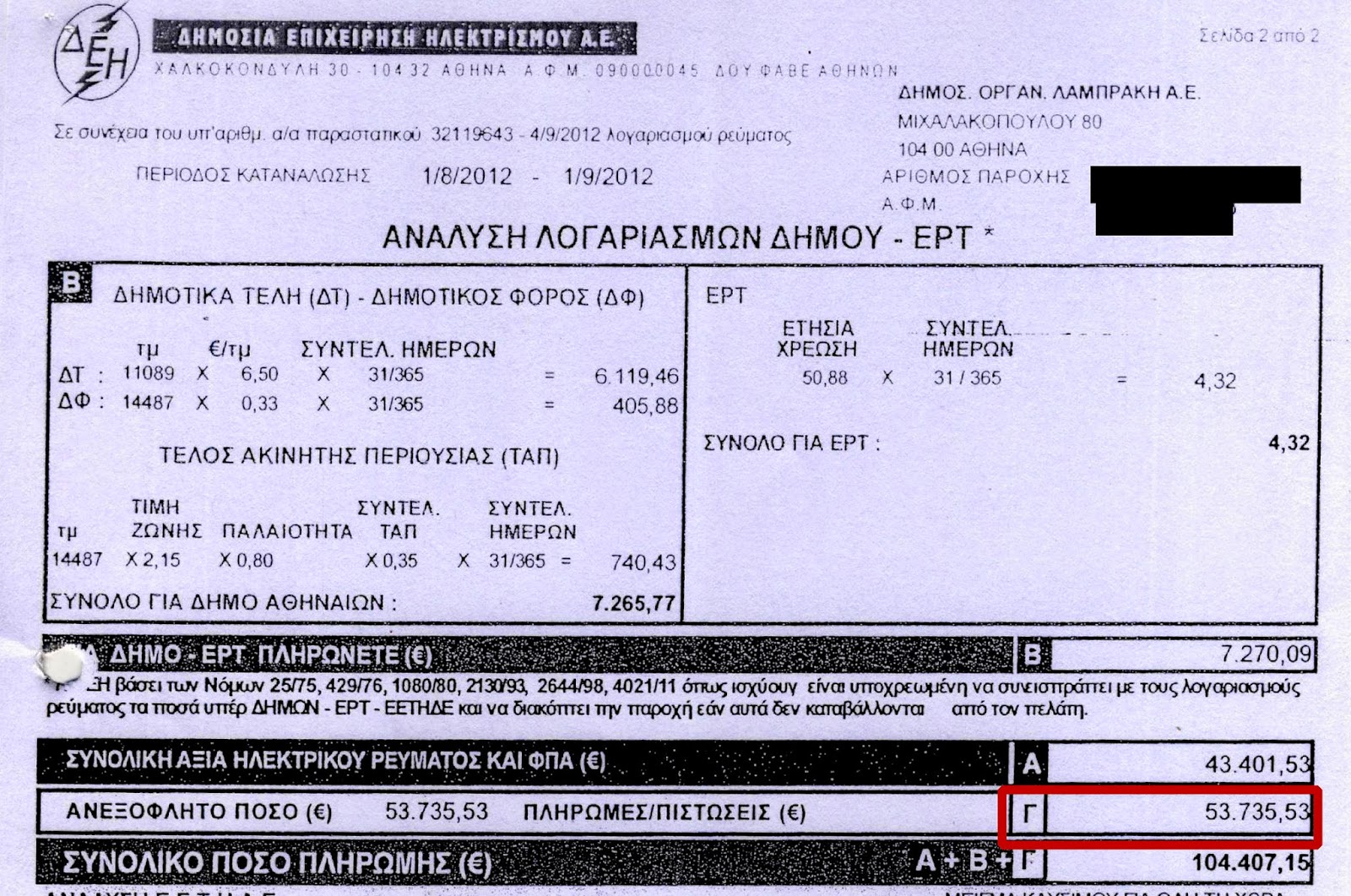 Δημοκρατίας και 7 ντοκουμέντα από τους κακοπληρωτές της ΔΕΗ (ναι είναι