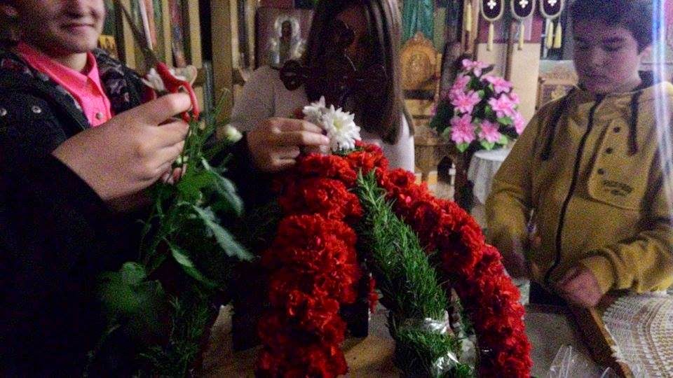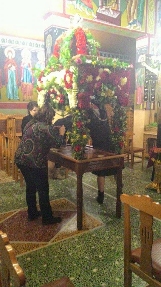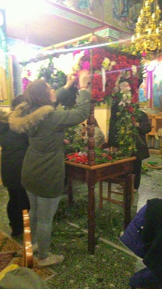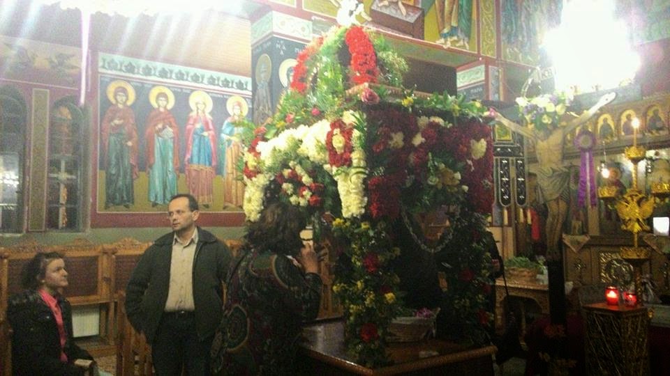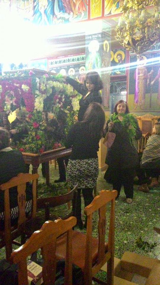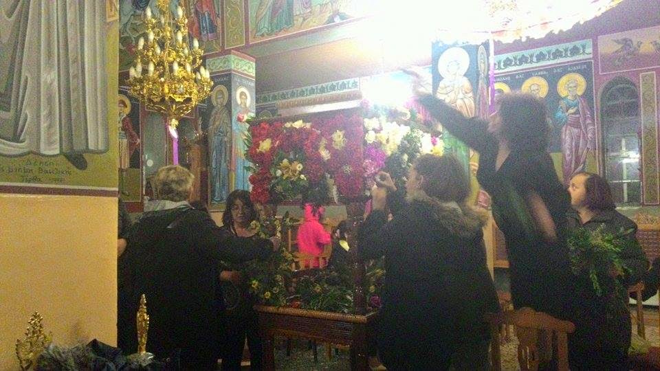 Λίγο μετά τη λειτουργία της Μ. Πέμπτης και της σταύρωσης του Κυρίου, πραγματοποιήθηκε το στόλισμα του Επιταφίου από τις γυναίκες του χωριού. Με τη βοήθεια μικρών και μεγάλων στολίστηκε για μια ακόμη χρονιά ο Επιτάφιος, η περιφορά του οποίου έγινε χθες Μ. Παρασκευή.