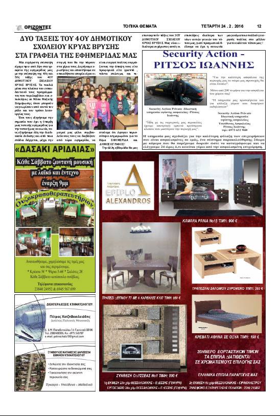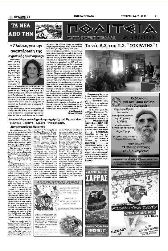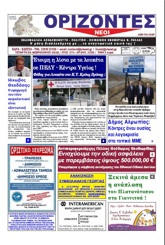 Οι Νέοι Ορίζοντες, η νέα ανανεωμένη εφημερίδα το νομού Πέλλας με πλούσια ύλη και θέματα τα οποία περιέχουν πρωτογενή δημοσιογραφία κυκλοφορεί για άλλη μια εβδομάδα στα περίπτερα του νομού Πέλλας αλλά και σε επιλεγμένους χώρους. Με τη δημοσιογραφική πένα των Λύσανδρου Αμιτζόγλου και Χρήστου Δημητριάδη παρουσιάζουν θέματα με μόνο γνώμονα την ενημέρωση του πολίτη. Δείτε παρακάτω το νέο τεύχος που κυκλοφορεί. Όσοι επιθυμούν μπορούν να γίνουν συνδρομητές τηλεφωνώντας στο 694 961 9315, 23820 63866 23810 22180.