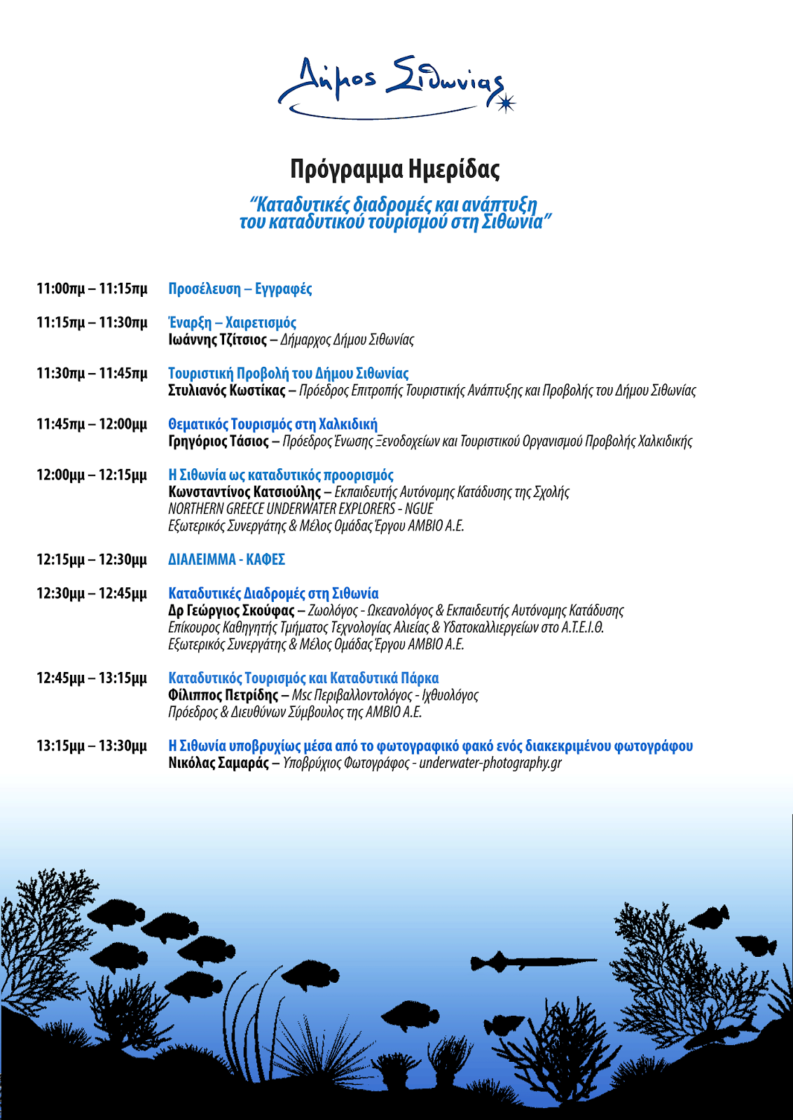 του καταδυτικού τουρισμού στη Σιθωνία», το Σάββατο 25 Απριλίου, στις 11 το