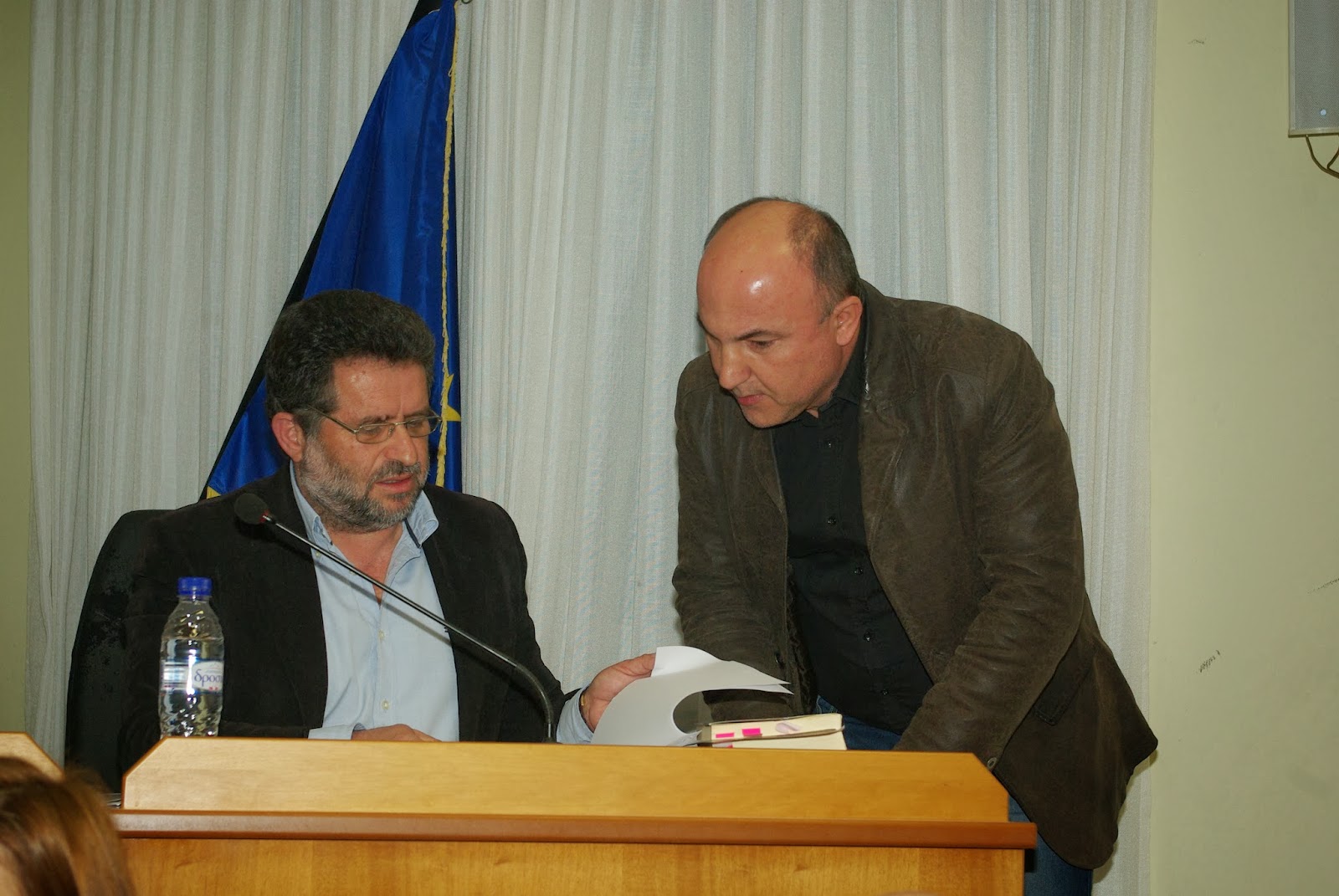 | Ο Πρόεδρος της δημοτικής επιχείρησης των Λουτρών Γιάννης Ιωαννίδης και ο πρόεδρος της ΔΕΥΑ Νίκος Παρούτογλου |