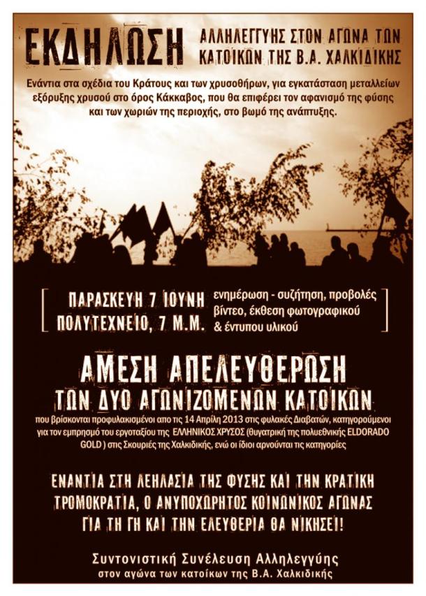 Χαλκιδική ΕΚΔΗΛΩΣΗ ΑΛΛΗΛΕΓΓΥΗΣ ΣΤΟΝ ΑΓΩΝΑ ΤΩΝ ΚΑΤΟΙΚΩΝ ΤΗΣ Β.Α. ΧΑΛΚΙΔΙΚΗΣ Χρήστος Δημητριάδης02/06/2013037 views Επιτροπή Αγώνα Μεγάλης Παναγίας πηγή:epitropiagonapanagias.blogspot.gr
