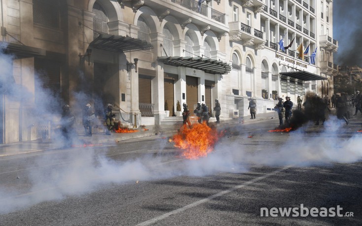 Επεισόδια ξέσπασαν στο κέντρο της Αθήνας το μεσημέρι της Πέμτπης, στο πλαίσιο της γενικής απεργίας.