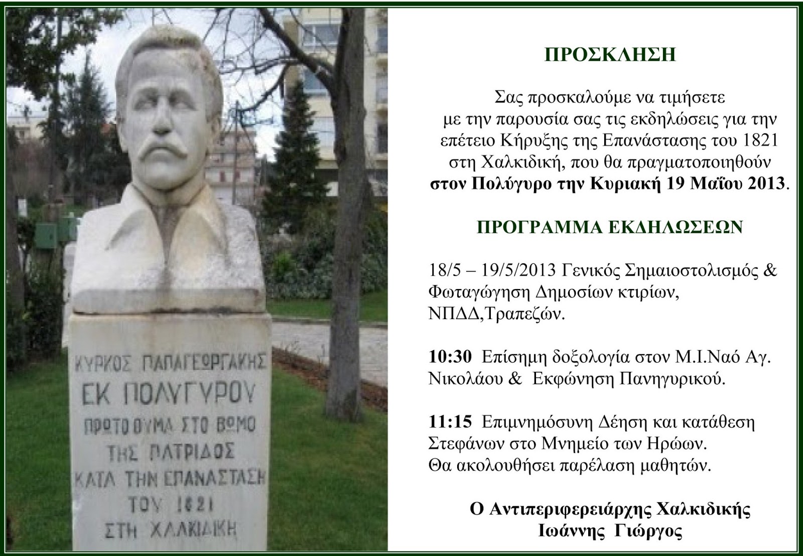 Χαλκιδική Επέτειος κήρυξης Επανάστασης Χαλκιδικής 1821 στον Πολύγυρο [ΒΙΝΤΕΟ] Χρήστος Δημητριάδης19/05/2013048 views