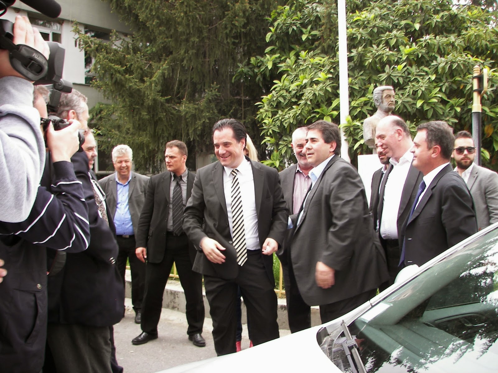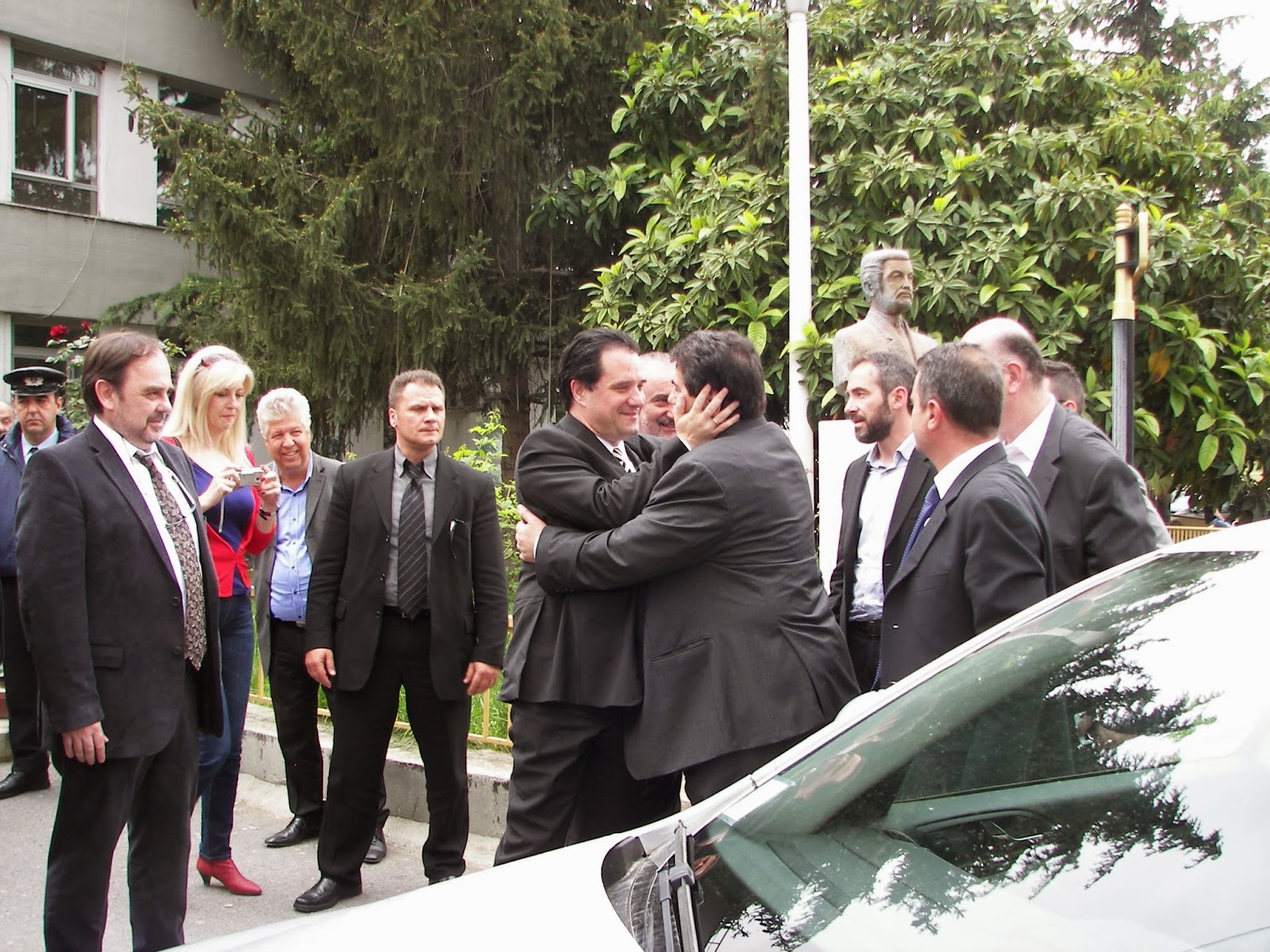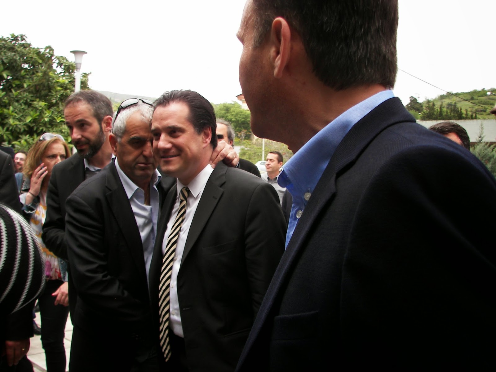 | Πολύ θερμό το κλίμα ανάμεσα στον Δάνη Τζαμτζή που είζε την μέση του και στον Άδωνι Γεωργιάδη! |
