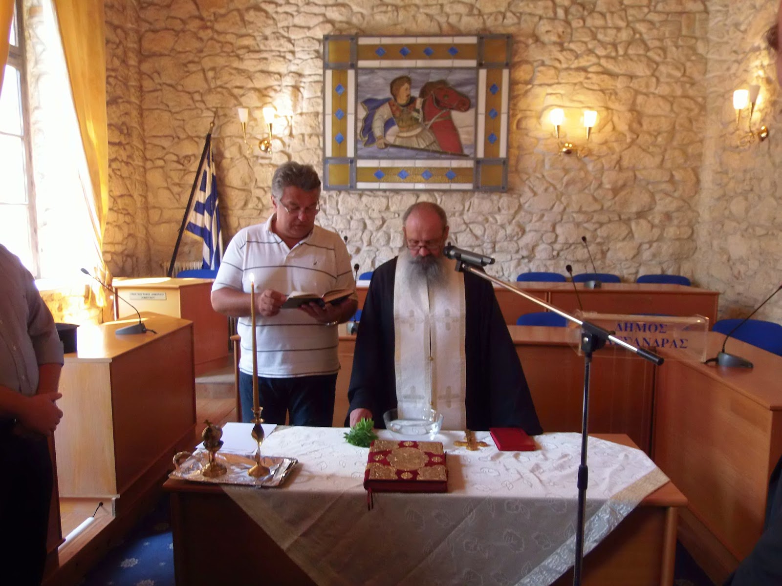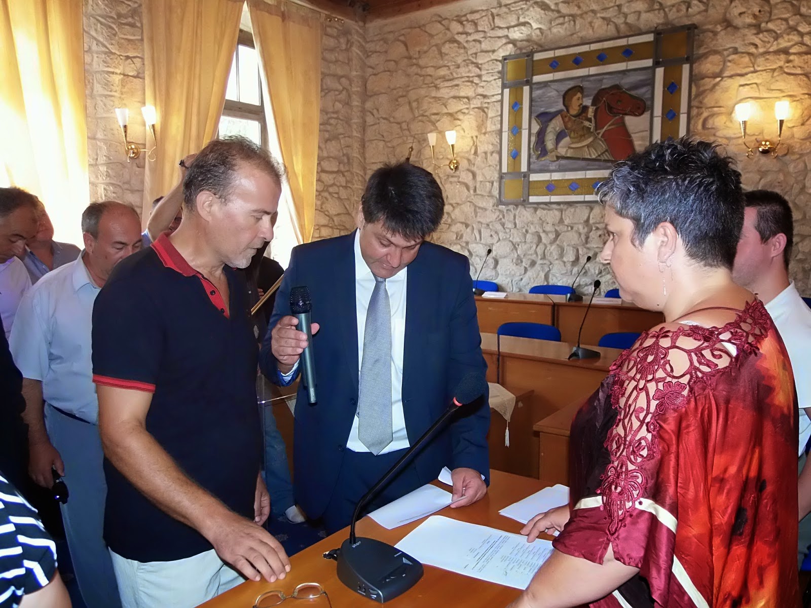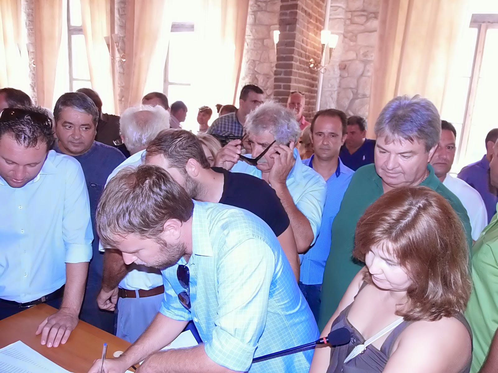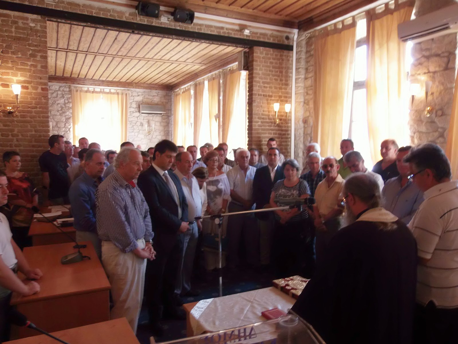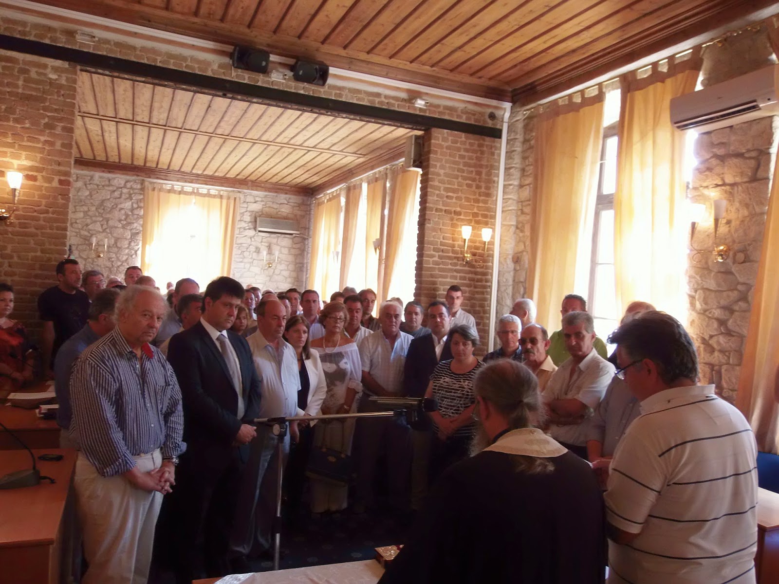 Σε ιδιαίτερα λαμπρό κλίμα πραγματοποιήθηκε η τελετή ορκωμοσίας του δημοτικού συμβούλιου και των δημοτικών και τοπικών κοινοτήτων και εκπροσώπων τοπικών κοινοτήτων Δήμου Κασσάνδρας, στην αίθουσα συνεδριάσεων του Δημοτικού Συμβουλίου στο Δημαρχείο Κασσάνδρας την Τετάρτη 27-08-2014.