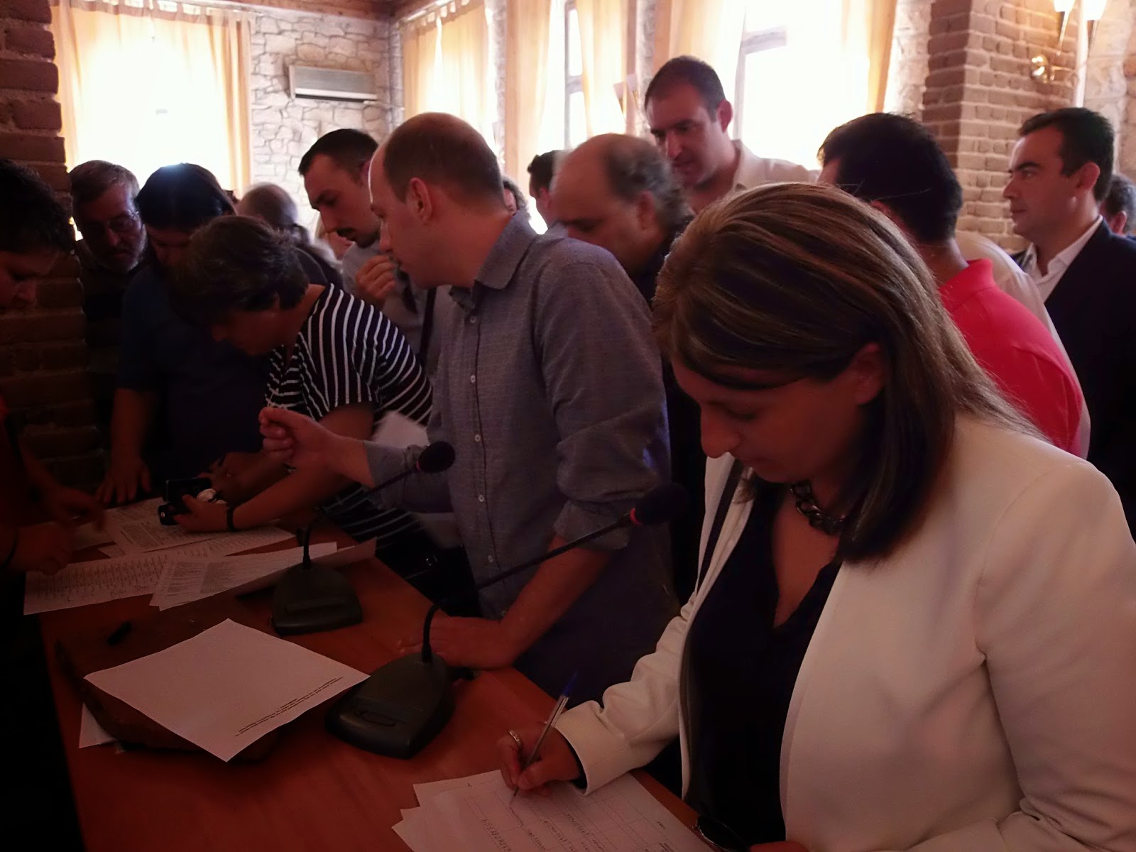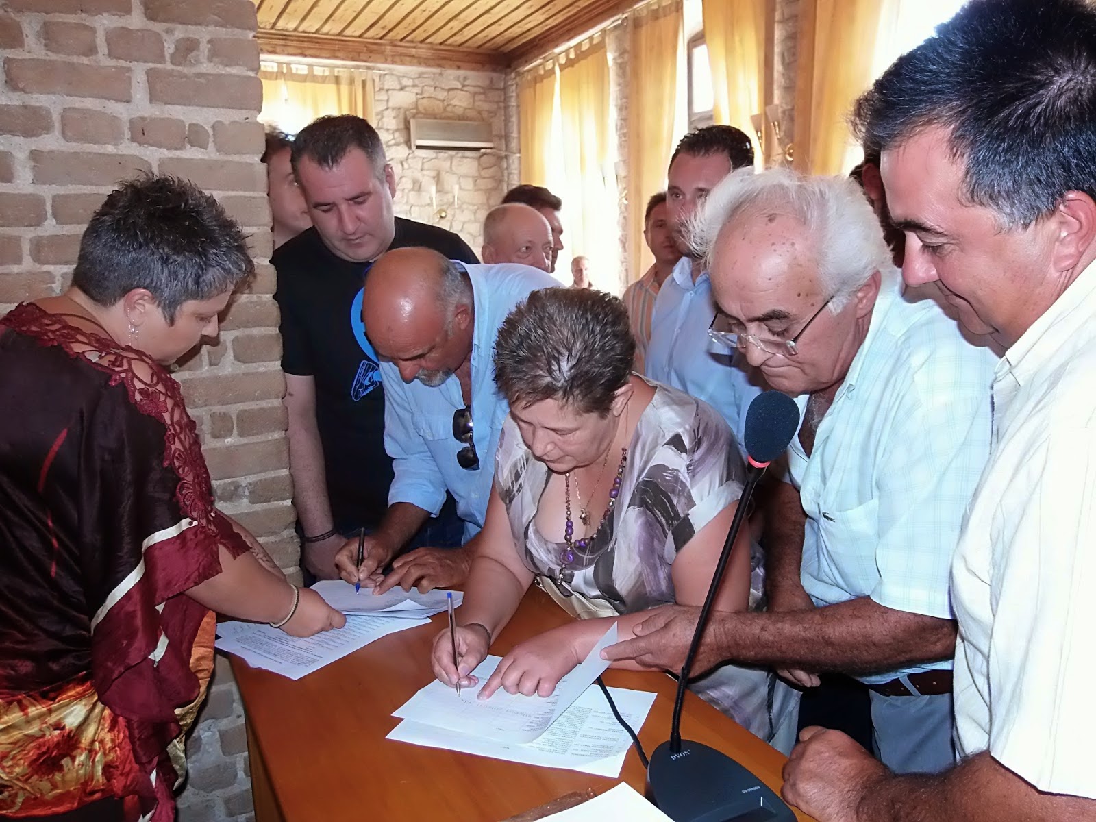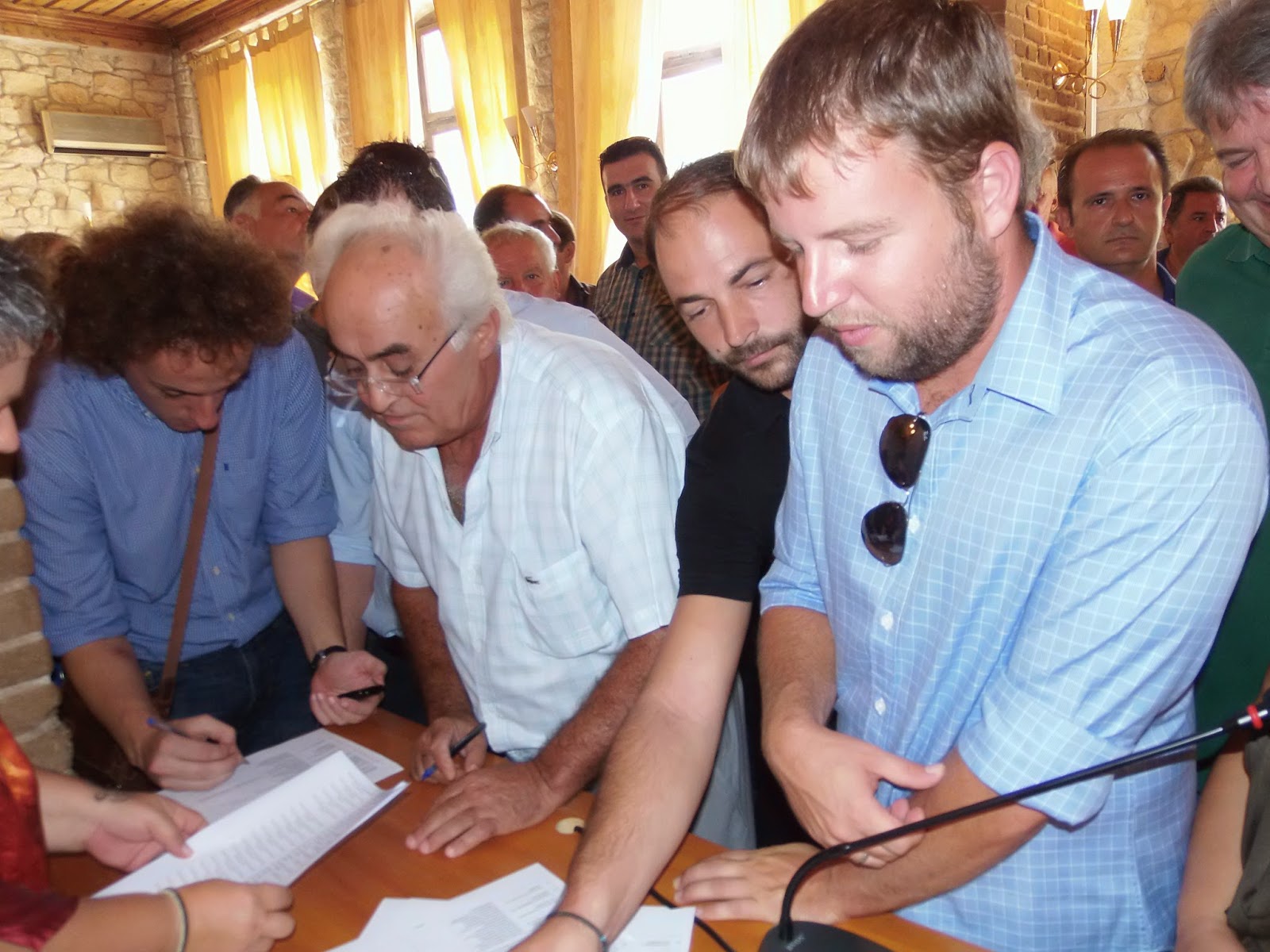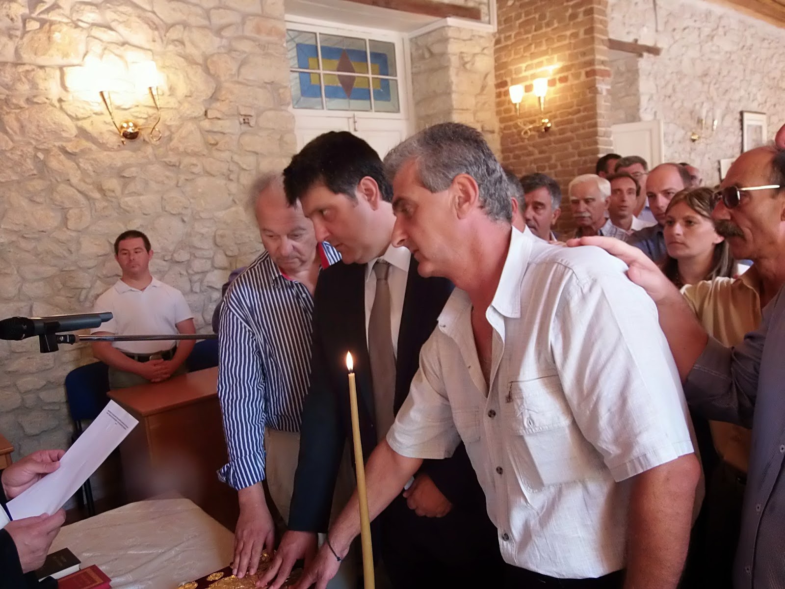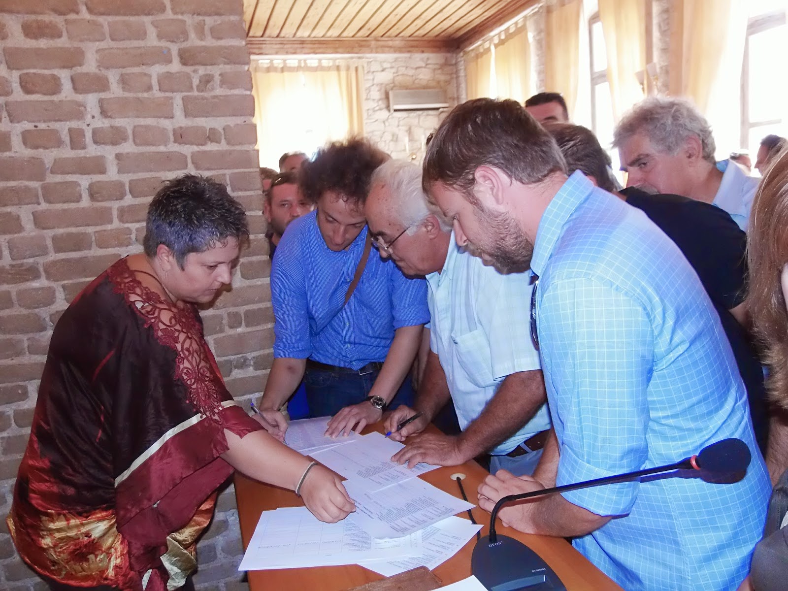 Σε ιδιαίτερα λαμπρό κλίμα πραγματοποιήθηκε η τελετή ορκωμοσίας του δημοτικού συμβούλιου και των δημοτικών και τοπικών κοινοτήτων και εκπροσώπων τοπικών κοινοτήτων Δήμου Κασσάνδρας, στην αίθουσα συνεδριάσεων του Δημοτικού Συμβουλίου στο Δημαρχείο Κασσάνδρας την Τετάρτη 27-08-2014.