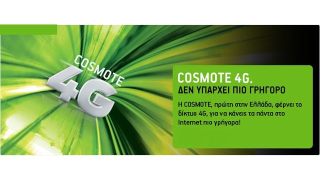 Σε εξέλιξη βρίσκεται η ανάπτυξη του δικτύου 4G της COSMOTE, δίνοντας σε όλο και περισσότερους καταναλωτές τη δυνατότητα να ζήσουν τη μοναδική εμπειρία απίστευτα υψηλών ταχυτήτων Mobile Internet, που πρώτη διέθεσε στην Ελλάδα η COSMOTE.