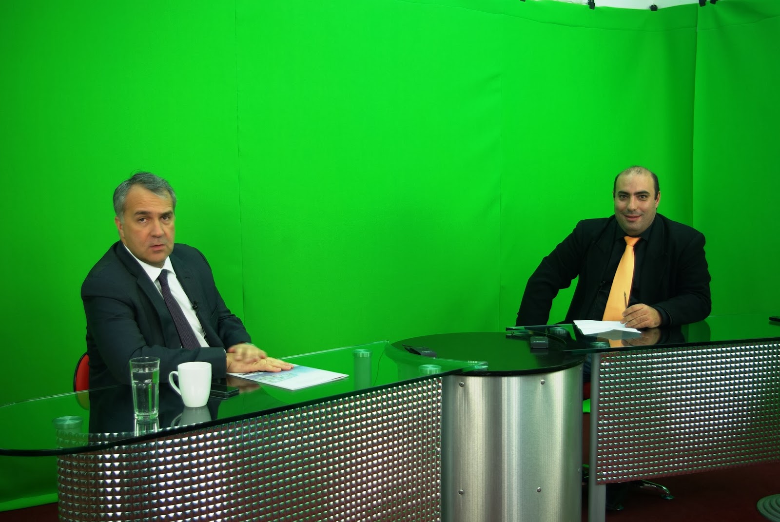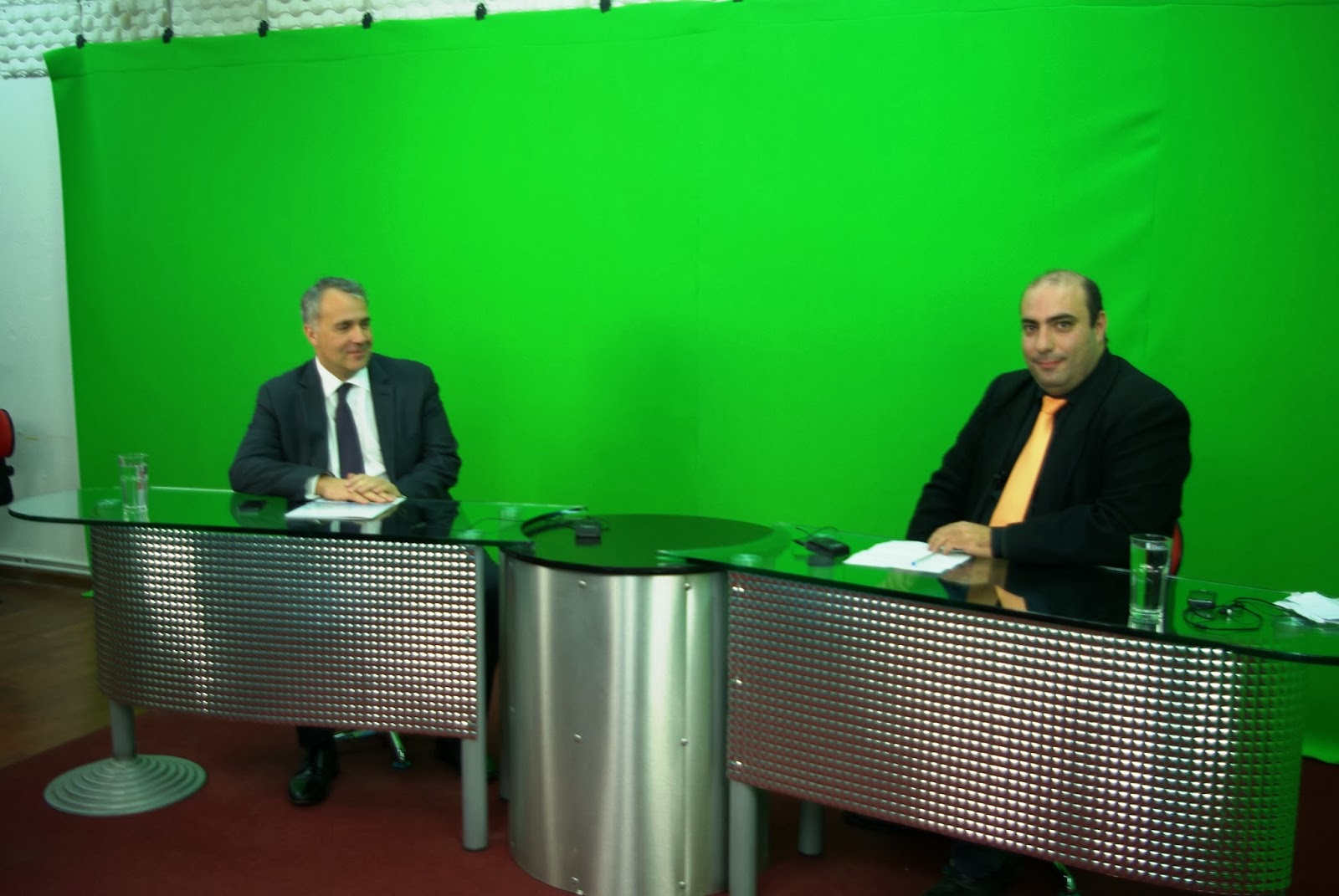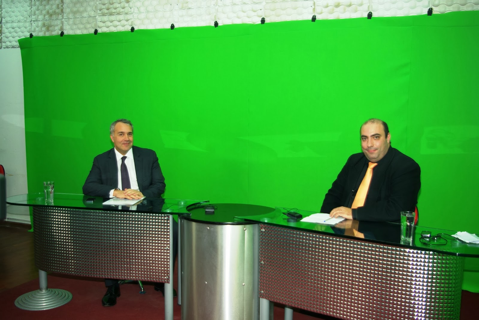 | Χαλαρή συζήτηση παρούσια του δημοσιογράφου Λύσανδρου Αμιτζόγλου πριν αρχίσει η εκπομπή |
