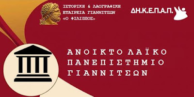 Σας προσκαλούμε να τιμήσετε με την παρουσία σας τη δωδέκατη εκδήλωση της 22ης περιόδου 2017 – 2018 του Ανοικτού Λαϊκού Πανεπιστημίου Γιαννιτσών, που