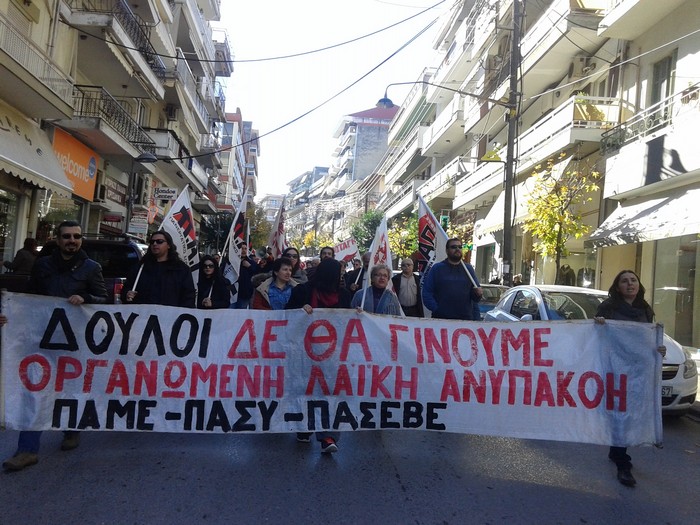 ακολούθησαν πορείες στις δύο πόλεις του Νομού με τα πανό του ΠΑΜΕ και της ΠΑΣΥ