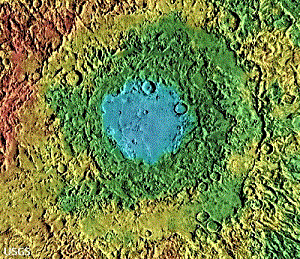 έχει τέσσερα μυστηριώδη μεγάλα πλατώματα. Ο κρατήρας Κόρολεφ στην μέση