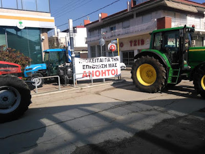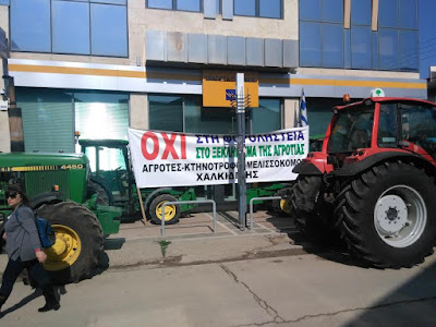 Μέχρι αυτή την ώρα οι αγρότες της Χαλκιδικής κρατούν αποκλεισμένο το κατάστημα της Τράπεζας Πειραιώς στο εμπορικό κέντρο των Νέων Μουδανιών. Με αυτό τον τρόπο διαμαρτύρονται στον εμπαιγμό της Κυβέρνησης και υποστηρίζουν ότι θα φτάσουν μέχρι το έσχατο σημείο του αγώνα τους μέχρι να δικαιωθούν τονίζοντας παράλληλα πως αυτή τη φορά κοντά τους έχουν το σύνολο των μικρομεσαίων της Χώρας που βλέπουν και δική τους δικαίωση μέσα από τον αγώνα που κάνουν οι αγρότες. Παρακάτω δείτε τις φωτογραφίες: