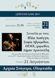 21 Αυγούστου 2013, ώρα 21:30, στον Αρχαιολογικό χώρο των Αρχαίων Σταγείρων,