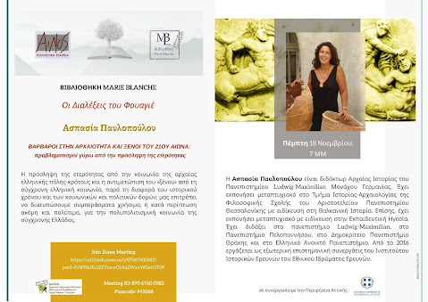 Ασπασία Παυλοπούλου: ΒΑΡΒΑΡΟΙ ΚΑΙ ΞΕΝΟΙ “Οι Διαλέξεις του Φουαγιέ” Βιβλιοθήκη Marie Blanche