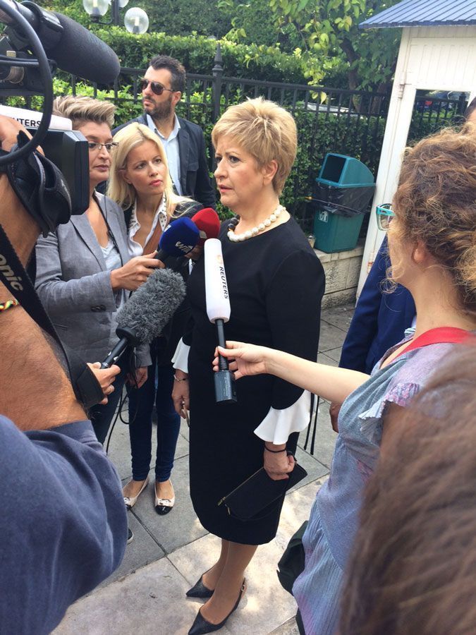 Στα μαύρα εμφανίστηκε και η Μαρία – Κόλλια Τσαρουχά, υφυπουργός αρμόδια για θέματα Μακεδονίας – Θράκης. Το σύνολό της συμπλήρωνε ένα κολιέ με μεγάλες λευκές πέρλες.