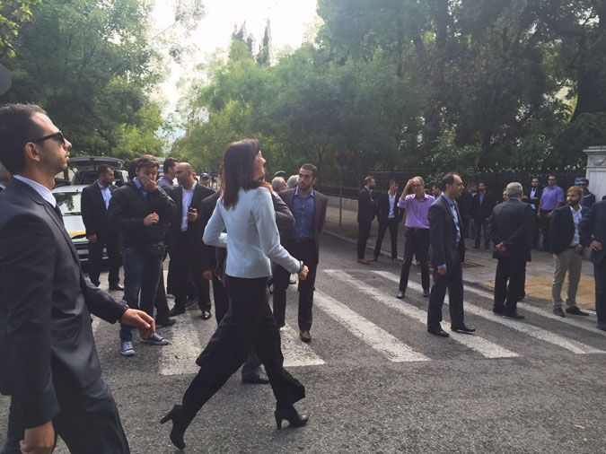 Οι κόκκινες γόβες και το τσαντάκι της κυβερνητικού εκπροσώπου Όλγας Γεροβασίλη που έφτασε στο Προεδρικό Μέγαρο στο πλευρό του Αλέξη Τσίπρα μαγνήτισαν τα βλέμματα, ενώ εντύπωση δημιούργησε και η επιλογή του παντελονιού που επέλεξε. Ασπρόμαυρο καρό με λευκή μπλούζα και μαύρο σακάκι.