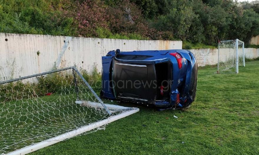 Ασυνήθιστο περιστατικό στην Κρήτη. Αυτοκίνητο ντεράπαρε και έπεσε μέσα σε γήπεδο.