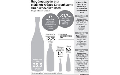 Σύμφωνα με τα όσα ισχύουν σήμερα, το τυποποιημένο τσίπουρο και η τσικουδιά επιβαρύνονται με ΕΦΚ 12,75 ευρώ/λίτρο αιθυλικής αλκοόλης, κατά 50% χαμηλότερο σε σχέση με τον ΕΦΚ με τον οποίο επιβαρύνονται τα υπόλοιπα αλκοολούχα ποτά (25,50 ευρώ/λίτρο αιθυλικής αλκοόλης). Το τσίπουρο και η τσικουδιά διήμερων (πρόκειται για χύμα προϊόν) επιβαρύνονται με ακόμη χαμηλότερο ΕΦΚ, μόλις 1,4 ευρώ/λίτρο αιθυλικής αλκοόλης. Υπενθυμίζεται ότι η μπίρα επιβαρύνεται με ΕΦΚ 6,5 ευρώ/λίτρο, ενώ το κρασί δεν επιβαρύνεται με ΕΦΚ.