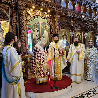 Προσφωνώντας τον ο Σεβασμιώτατος αναφέρθηκε στην ευλάβεια, στην ευαισθησία και την ευάρεστη διακονία του και τόνισε ότι ο ιερεύς είναι εκείνος που εκτελεί την εντολή του Κυρίου: «τοῦτο ποιεῖτε εἰς τὴν ἐμὴν ἀνάμνησιν» (Λκ. 22,19). Δηλαδή να τελεί το μυστήριο της Θείας Ευχαριστίας. «Το κύριο έργο σου είναι να εφαρμόζεις αυτή την σωτήρια εντολή του Κυρίου», είπε χαρακτηριστικά, «πιο πάνω από τον εαυτό σου και από την την οικογένειά σου ακόμα θα πρέπει να έχεις το υπούργημα της ιερωσύνης». Αναφέρθηκε ακόμη στο υπεύθυνο έργο που πρέπει να επιτελέσει στην νέα ενορία του εκφράζοντας βεβαιότητα για την επιτυχία του. Προσέθεσε ακόμη ότι στους πειρασμούς που θα συναντήσει θα πρέπει να θυμάται ότι: «μείζων ἐστὶν ὁ ἐν ὑμῖν ἢ ὁ ἐν τῷ κόσμῳ» (Α΄ Ἰω. 4,8). Δηλαδή ότι η δύναμη της χάριτος του Θεού είναι ισχυρότερη από κάθε πειρασμό που μπορεί να συναντήσει. Τέλος ο Σεβασμιώτατος υπογράμμισε ότι, εφόσον επιτελέσει το έργο του με ευγένεια προς τους ανθρώπους και με αγάπη προς τον Θεό, θα έχει πολύ καλή καρποφορία, την οποία και ευχήθηκε.