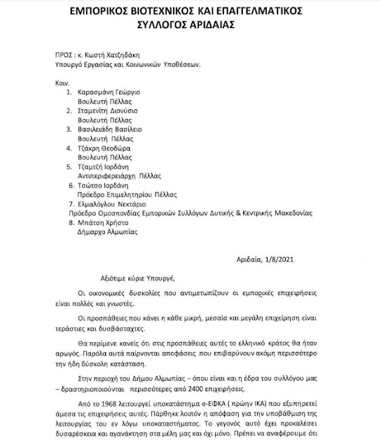 Διαμαρτυρία του Εμπορικού Βιοτεχνικού και επαγγελματικού συλλόγου Αριδαίας