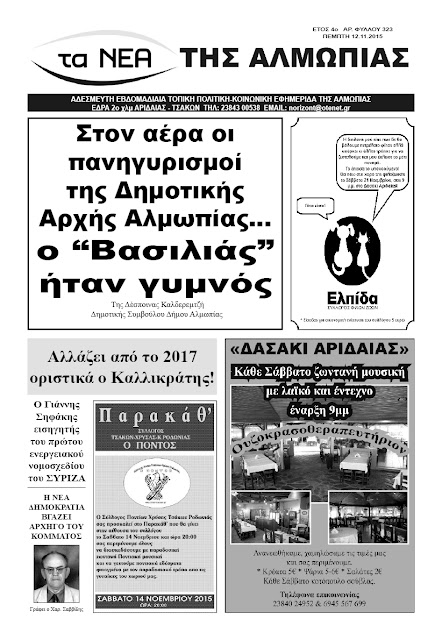Πρωτοσέλιδα Διαβάστε τα Νέα της Αλμωπίας που κυκλοφορούν! by Χρήστος Δημητριάδης 10 έτη ago written by Χρήστος Δημητριάδης 10 έτη ago 0 comments 0 minutes read 0FacebookTwitterPinterestEmail 36 0 FacebookTwitterPinterestEmail Χρήστος Δημητριάδης previous post Μαρτυρία ΣΟΚ: Παιδιά λιποθυμούν στα σχολεία από την πείνα next post Αλλάζει από το 2017 οριστικά ο Καλλικράτης! You may also like Ένας χρόνος ΝΕΑ ΤΗΣ ΠΕΛΛΑΣ!!! 5 έτη ago Διαβάστε το Θέμα της Χαλκιδικής!!! 5 έτη ago Δείτε το αυριανό τεύχος των Νέων της Πέλλας 5 έτη ago Διαβάστε τα Νέα της Πέλλας!!! 5 έτη ago Διαβάστε τα Νέα της Πέλλας!!! 5 έτη ago Διαβάστε τα Νέα της Πέλλας!!! 5 έτη ago Leave a CommentΓια να σχολιάσετε πρέπει να συνδεθείτε.