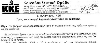 η ίδια αντιλαϊκή πολιτική που οδηγεί τους κτηνοτρόφους να πουλάνε πάμφθηνα τα προϊόντα