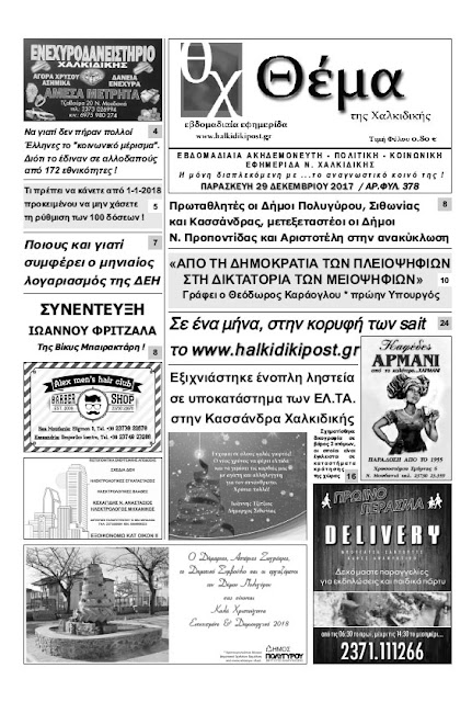 Διαβάστε το τελευταίο τεύχος της εφημερίδας Θέμα της Χαλκιδικής