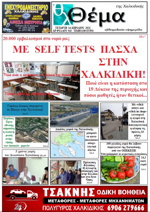 Διαβάστε την ΕΒΔΟΜΑΔΙΑΙΑ ΕΦΗΜΕΡΙΔΑ ΘΕΜΑ ΤΗΣ ΧΑΛΚΙΔΙΚΗΣ, την μόνη έγχρωμη και πολυσέλιδη φωνή που κυκλοφορεί σε κάθε γωνιά της περιοχής έχοντας πάνω από όλα την
