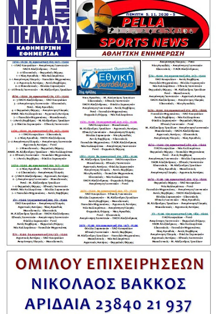 Η έντυπη Καθημερινή εφημερίδα Νέα της Πέλλας εξέδωσε μέσα από τις σελίδες της, έναν πρότυπο αθλητικό οδηγό για τον ερασιτεχνικό αθλητισμό του νομού Πέλλας. Με γνώμονα βέβαια την πληροφόρηση και την ενημέρωση των παραγόντων και τον φιλάθλων, η εφημερίδα προχώρησε σε αυτό το πολύ ενδιαφέρον εγχείρημα. Δείτε το παρακάτω: