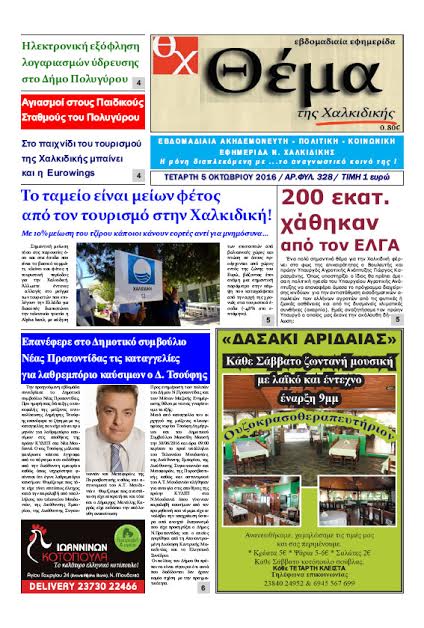 Έχει ενδιαφέρον να διαβάσετε τον περιφερειακό τύπο ώστε να βγάλετε τα συμπεράσματα σας και τα κυριότερα θέματα που επικρατούν. Θα δείτε τα πρωτοσέλιδα των εφημερίδων Θέμα της Χαλκιδικής, Νέοι Ορίζοντες και Νέα της Αλμωπίας: