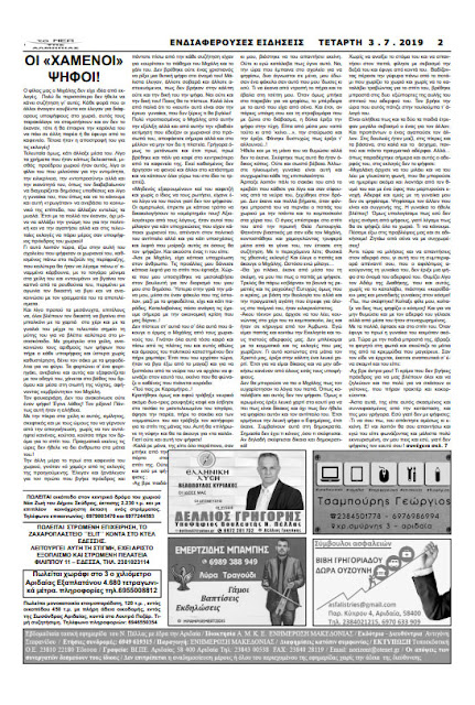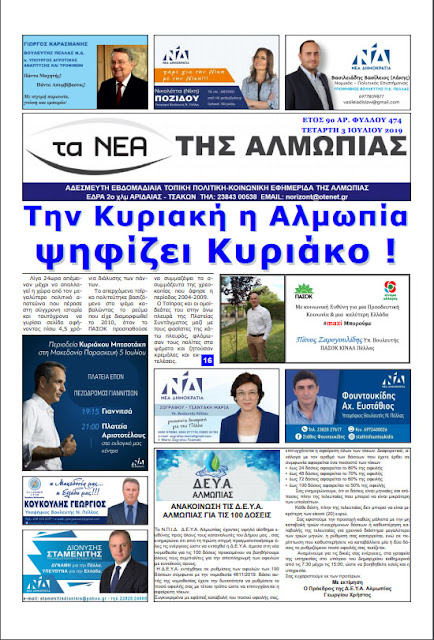 Να συστηθούμε! Αυτά είναι τα Νεα της Αλμωπίας. Η εβδομαδιαία εφημερίδα που ξεκινά από την Αριδαία και την Αλμωπια για όλη την για όλη την Πέλλα. Έγκυρα έγκαιρα αντικειμενικά το τελευταίο μας προεκλογικό τεύχος. Διαβάστε το τελευταίο προεκλογικό φύλλο μας πριν τις εθνικές εκλογές της 7ης Ιουλίου. Όλη η ειδησεογραφία.
