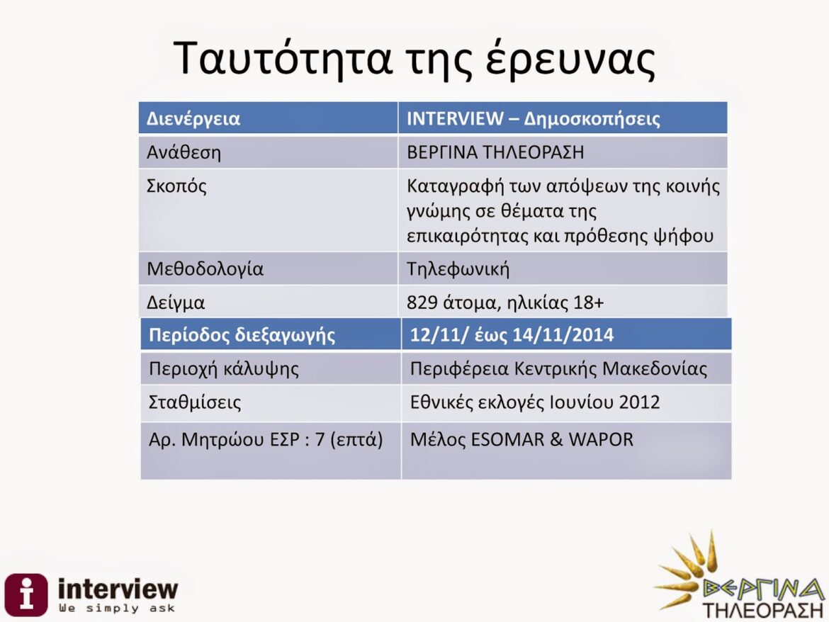Είναι η δεύτερη κατά σειρά δημοσκόπηση της ΒΕΡΓΙΝΑ TV η οποία σε συνεργασία