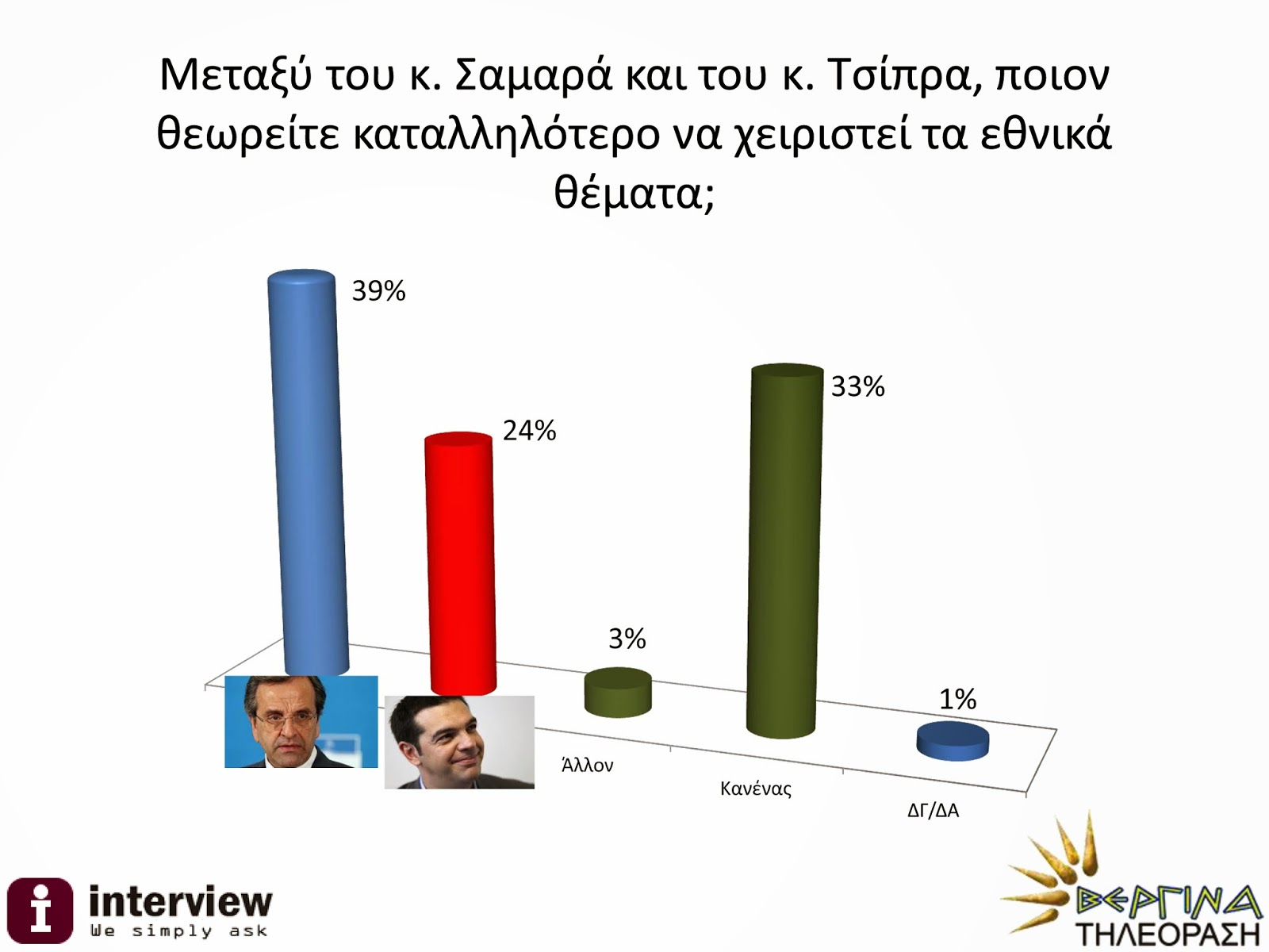 Σαμαρά καταλληλότερο να χειριστεί τα εθνικά θέματα με ποσοστό 39% έναντι του κ.