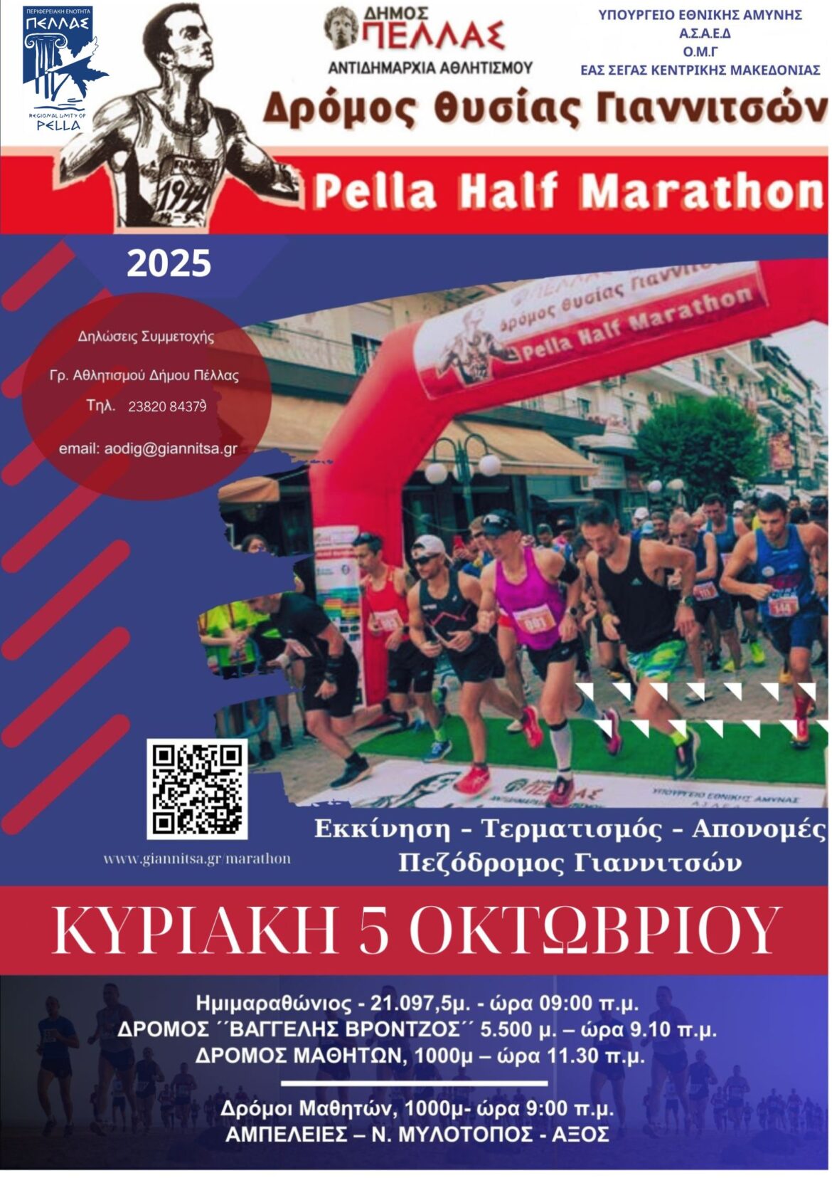 Ο Δρόμος Θυσίας 2025 – 12ος ΗΜΙΜΑΡΑΘΩΝΙΟΣ ΠΕΛΛΑΣ / PELLA HALF MARATHON, θα πραγματοποιηθεί την Κυριακή 5 Οκτωβρίου, στην μνήμη των εκτελεσθέντων Γιαννιτσωτών από τα Γερμανικά στρατεύματα κατοχής στις 14 Σεπτεμβρίου 1944.