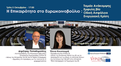Η Ευρωομάδα του ΣΥΡΙΖΑ – Προοδευτική Συμμαχία διοργανώνει την Τρίτη 5 Οκτωβρίου
