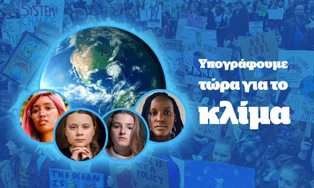 Έκκληση να στηριχθεί η εκστρατεία υπογραφών για το κλίμα, που έχουν ξεκινήσει η Γκρέτα Τούνμπεργκ και 3 ακόμη γνωστές νέες ακτιβίστριες από διαφορετικά μέρη του πλανήτη, απευθύνει το νέο κόμμα των Πράσινων.