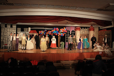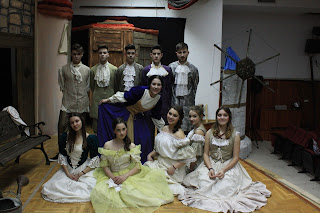 σκηνικά, επαγγελματικού θεάτρου θα έλεγε κανείς, υπέροχα ισπανικά κοστούμια της