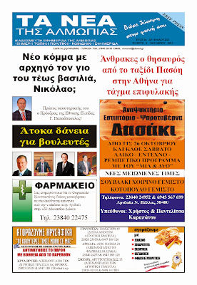 ΕΦΗΜΕΡΙΔΑ «ΤΑ ΝΕΑ ΤΗΣ ΑΛΜΩΠΙΑΣ» ΦΥΛΛΟ ΤΕΤΑΡΤΗΣ 9 ΟΚΤΩΒΡΙΟΥ 2013