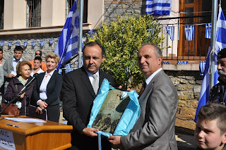 Υπουργός Μακεδονίας Θράκης κ. Θεόδωρος Καράογλου. Ο Δήμαρχος Έδεσσας χάρισε