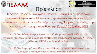 Εκδηλώσεις στα Γιαννιτσά για την «μαύρη» επέτειο της Τουρκικής εισβολής στην Κύπρο